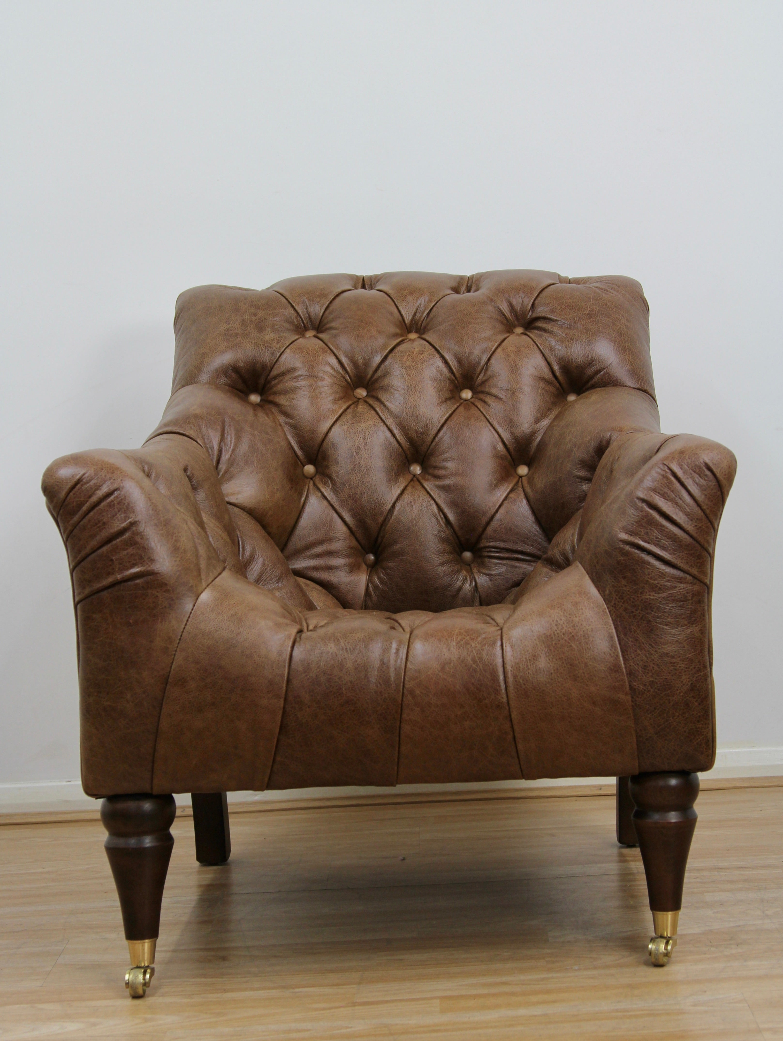 The skittle has a curvaceous design with gently sculpted lines and added buttoned detail for that classic look and feel. The fully sprung seat and back give a soft yet supportive sit. The brass castors elevate the chair and give it a modernised twist to a classic style.